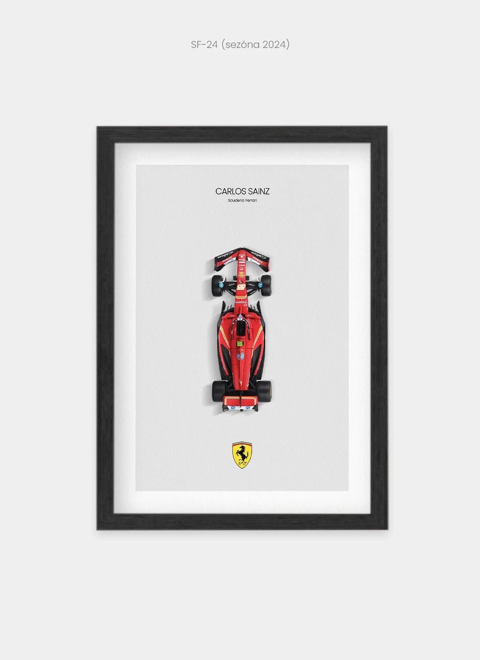 Všetky printy sú vytlačené kvalitnou tlačou na prémiový FineArt bavlnený papier s vyššou gramážou. Modely F1 sú značky Bburago v mierke 1:43 (cca 13 cm). Drevený rám môžete zavesiť na stenu alebo postaviť.