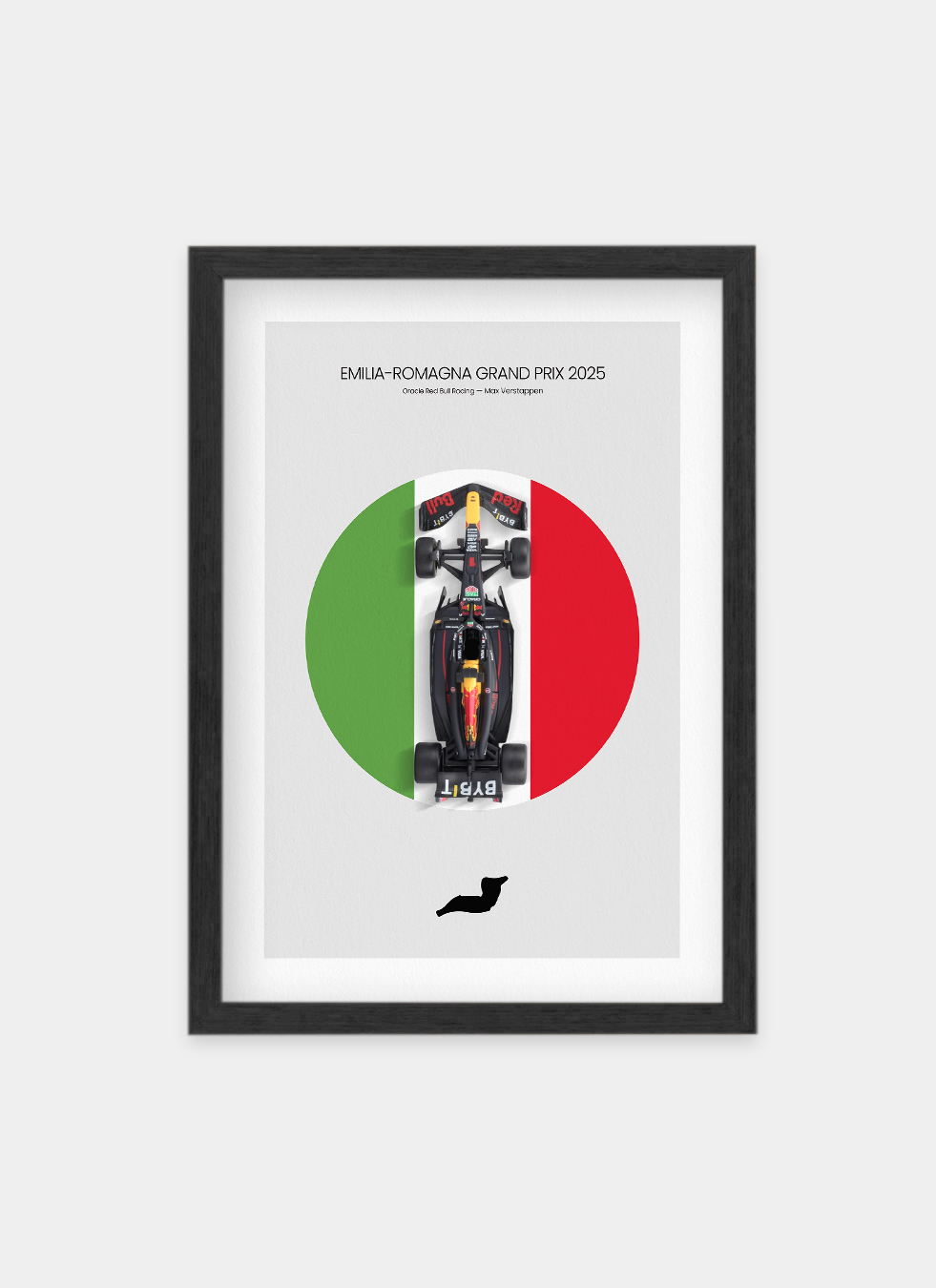 Krásna pripomienka na VC Emilia-Romagna 2025 a víťaza Maxa Verstappena. Originálny darček pre všetkých fanúšikov F1.