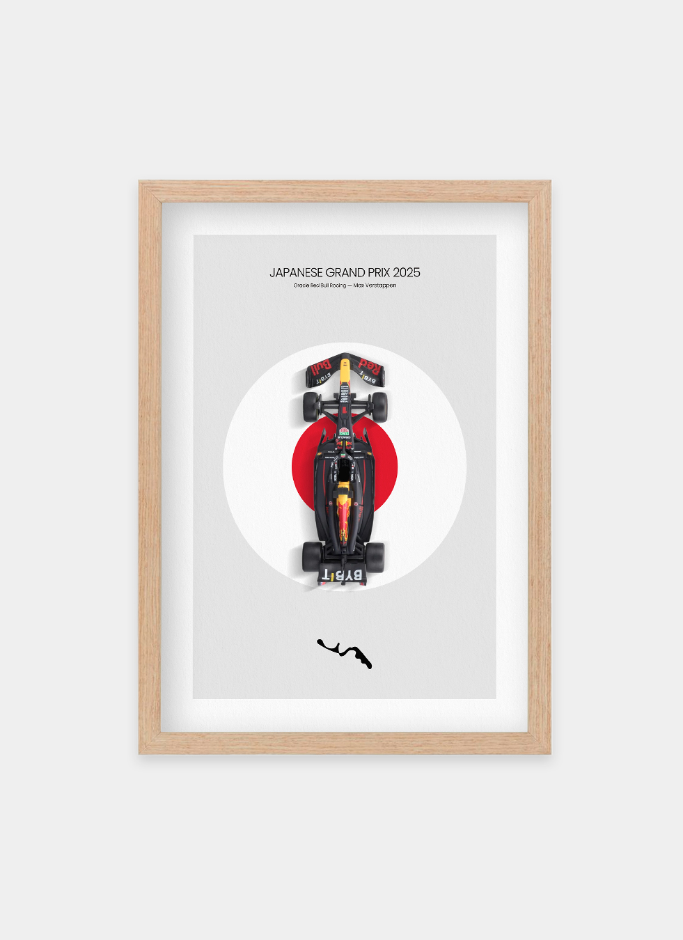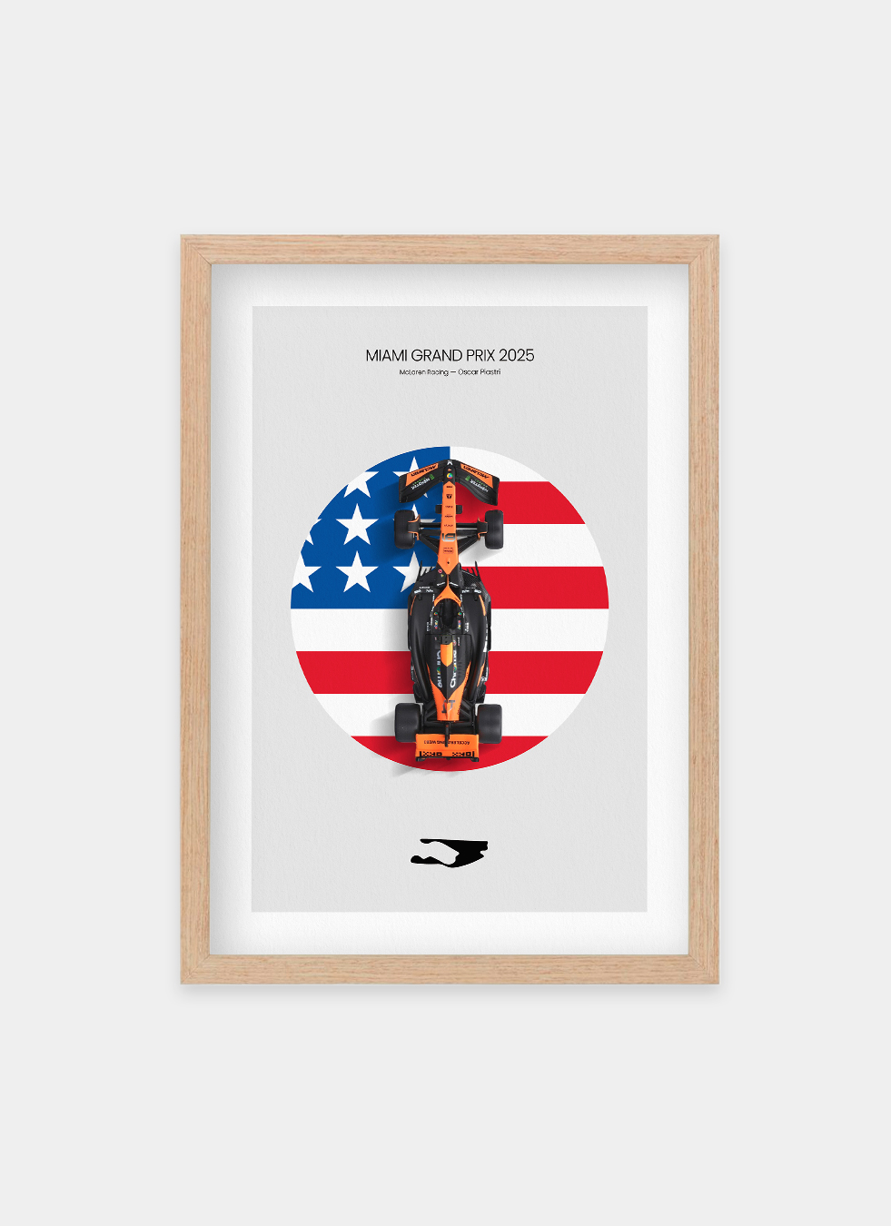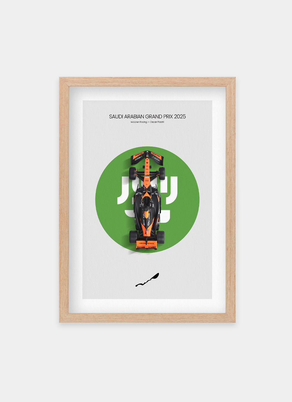 Všetky printy sú vytlačené kvalitnou tlačou na prémiový FineArt bavlnený papier s vyššou gramážou. Modely F1 sú značky Bburago v mierke 1:43 (cca 13 cm). Drevený rám môžete zavesiť na stenu alebo postaviť.