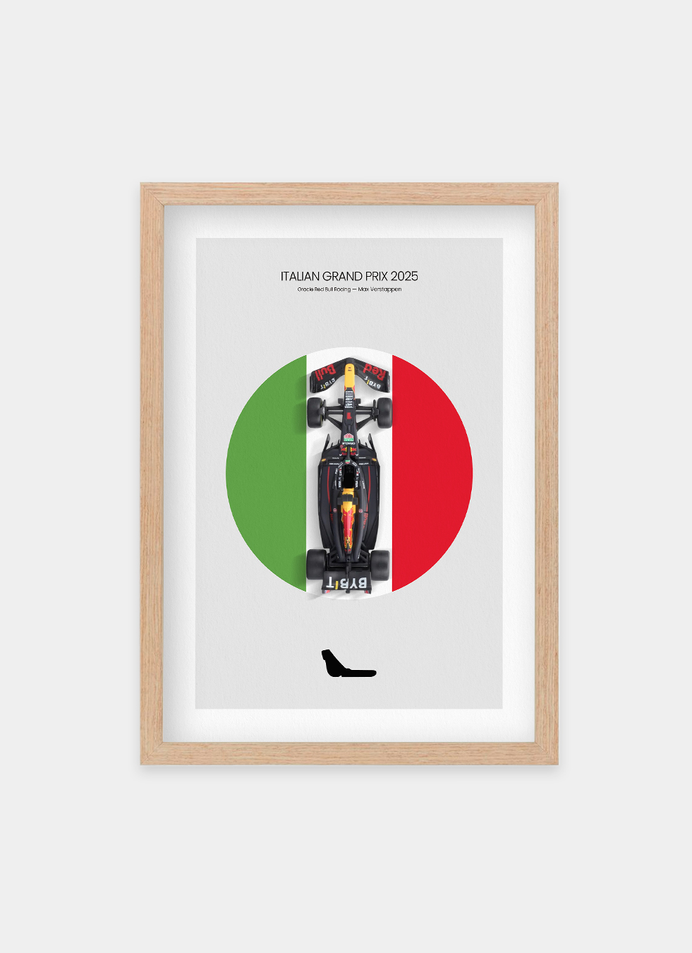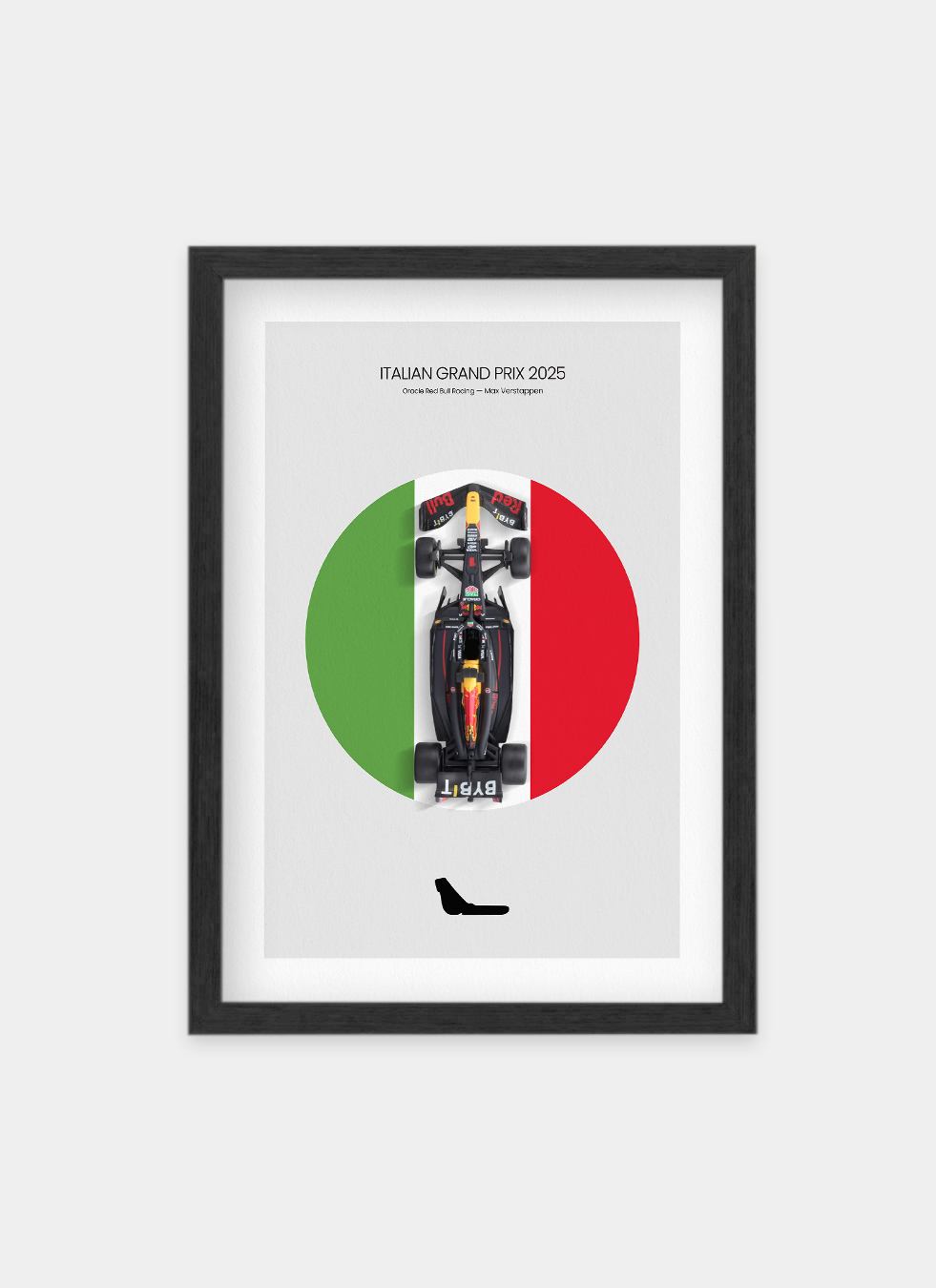 Krásna pripomienka na VC Talianska 2025 a víťaza Maxa Verstappena. Originálny darček pre všetkých fanúšikov F1.